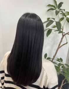 縮毛矯正で内側の癖を伸ばしながら表面にツヤが出るようにしました、