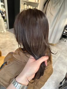 赤みをしっかり抑えた、透明感のあるブラウンカラー。