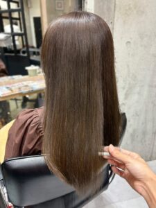 写真はおすすめカラー透明感ベージュ!赤みとオレンジみを消して透けたようなヘアカラーに!