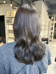 赤みをしっかり抑えた、透明感たっぷりのグレージュカラー。