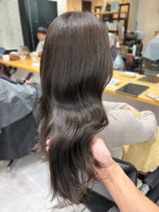 おすすめカラー透明感グレージュカラー!オレンジみを消して透けたようなヘアカラーに!自然光に当たると透明感抜群です!