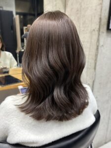先日のお客様ヘアスタイル!ロングヘアからバッサリカットして、透明感あるオリーブグレージュに染めさせていただきました!