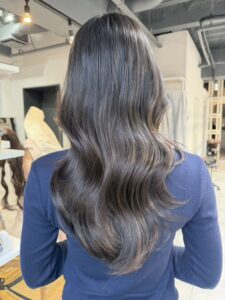 暗めトーンでも重く見えず、光に当たると透けるような質感が出るのがポイント(^^)