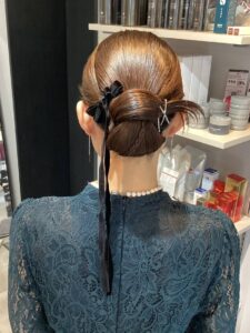リボンとピンを組み合わせるとよりお呼ばれヘア感がアップしてかわいいです(^^)