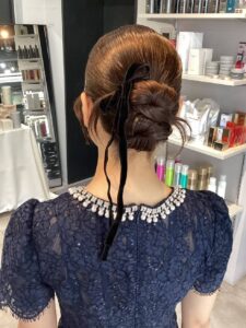 ちょっと長めのベロアリボンを組み合わせると華やかさが出てくれます!