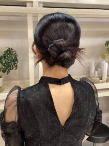 お団子部分にちょっと個性的な形を取り入れると飾りが無くてもオシャレに見えます!