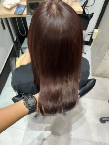 2025/09/15 こんにちは AIです!深みのあるレッドブラウンカラーですツヤ感たっぷりで、光に当たるとほんのり赤みが透けて見えるのがポイントです。落ち着いたトーンなので大人っぽさもあり、秋冬にぴったりの髪色です9月もまだまだ暑いですがご予約お待ちしております!韓国/カラー/縮毛矯正/トリートメント/顔周りカット/前髪カット/メンズ/髪質改善/ボブ/ヘアセット/ヘッドスパ/レイヤーカット/イルミナカラー