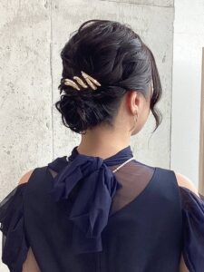 襟付きやチョーカータイプ、少しタートルネック寄りのお呼ばれドレスとの相性◎