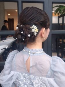 パールピンやパール付きのお花モチーフの飾りがより華やかで品もある可愛さがアップします(^^)