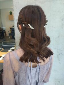 耳後ろから下に向かって髪の毛がとまるので、大人女性でもマッチします(^^)