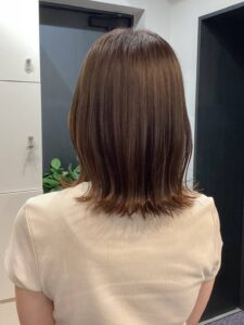 程よく赤みやオレンジみも抑えた仕上がりなので、明るい中にもくすみのあるカラーに!