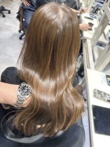 髪質改善やトリートメントを組み合わせることで、より艶のある柔らかい質感に仕上がります。