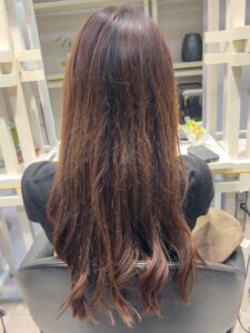 カラー剤に髪質改善の美容液を入れカラーをします。