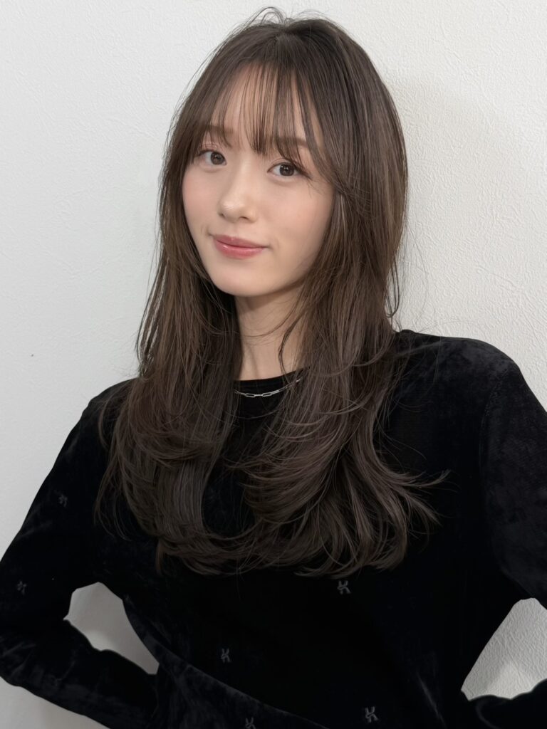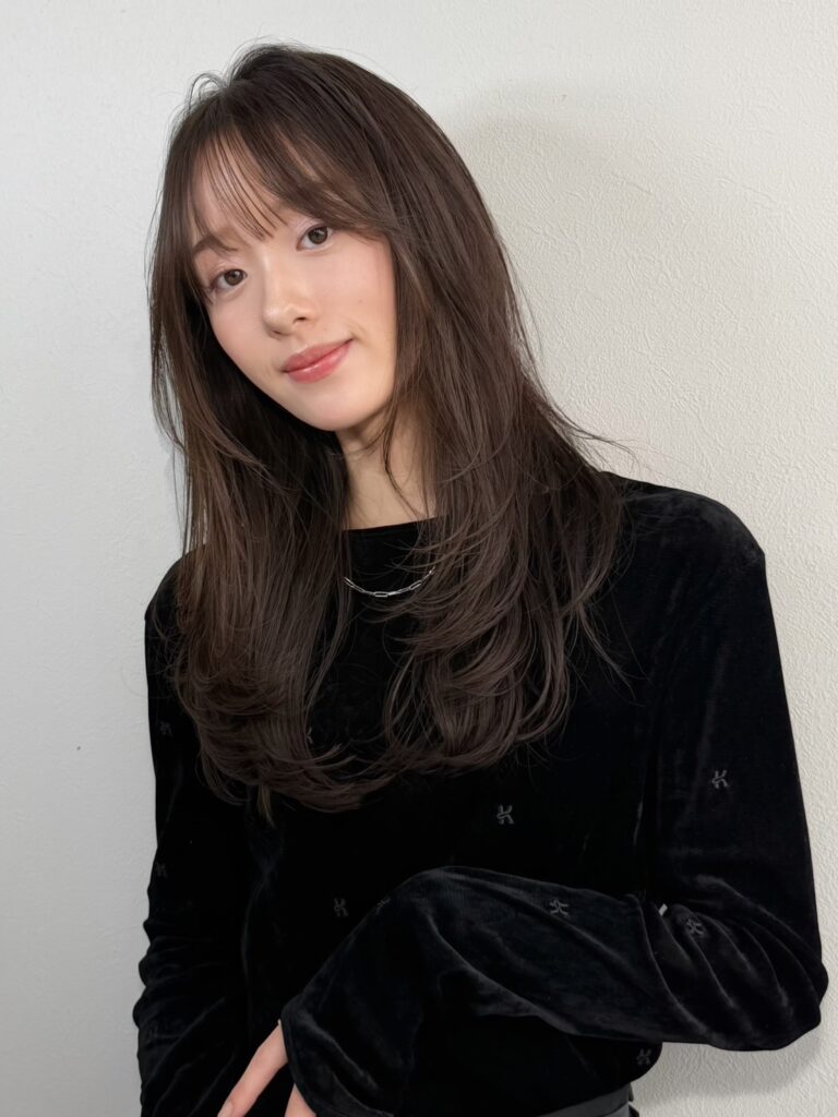 前髪は薄めで抜け感を出し、柔らかさをプラス。