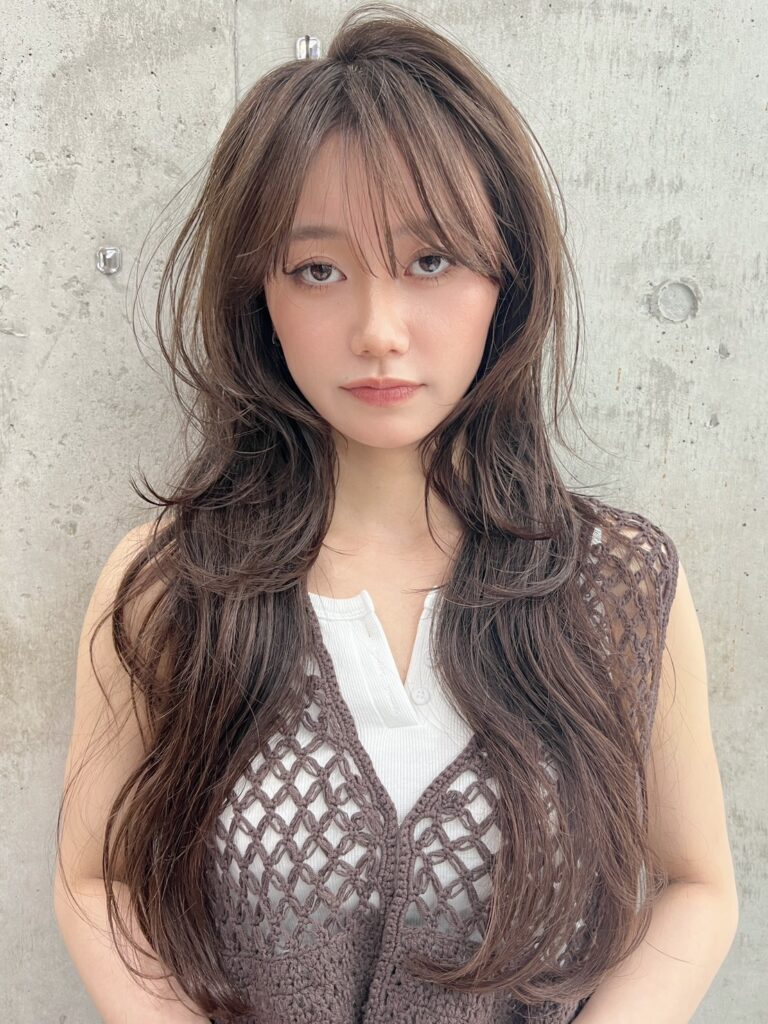 顔周りのレイヤーとロングの組み合わせで作る都会的なエッジの効いたスタイル